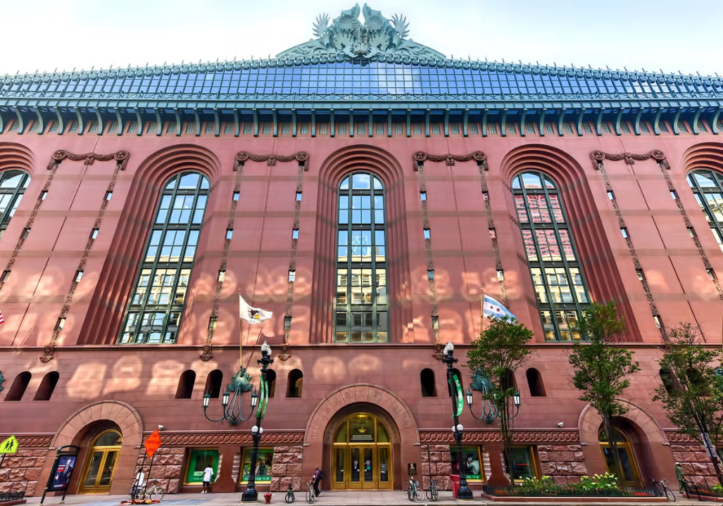 The building features impressive architecture, art exhibits, and a variety of unique educational resources in addition to its traditional resources as part of the Chicago Public Library System. The building’s late-1900s architecture highlights 5 giant owl statues on the roof, which are symbolic of knowledge.